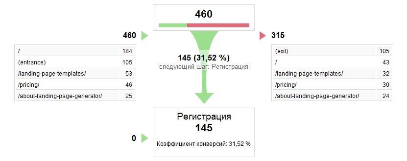 Для того, чтобы ознакомиться с данными по воронке конверсии, вы должны зайти в свой аккаунт Google Analytics и последовательно воспользоваться пунктами меню “Конверсии / Цели / Визуализация последовательностей” (Conversions / Goals / Funnel Visualization).
